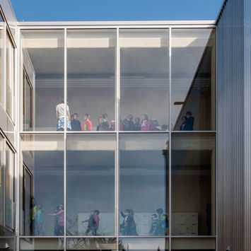 Le nouveau bâtiment de l'école maternelle et primaire prolonge le bâtiment existant de l'École européenne de Francfort-sur-le-Main. Conçu selon une structure modulaire en bois, il n'en demeure pas moins d'une grande qualité architecturale grâce à l'agencement des espaces autour d'un vaste couloir ouvert, orienté dans différentes directions. Outre les salles de classe, ce couloir sert de lieu de rencontre pour les enfants et offre diverses vues sur le paysage.
